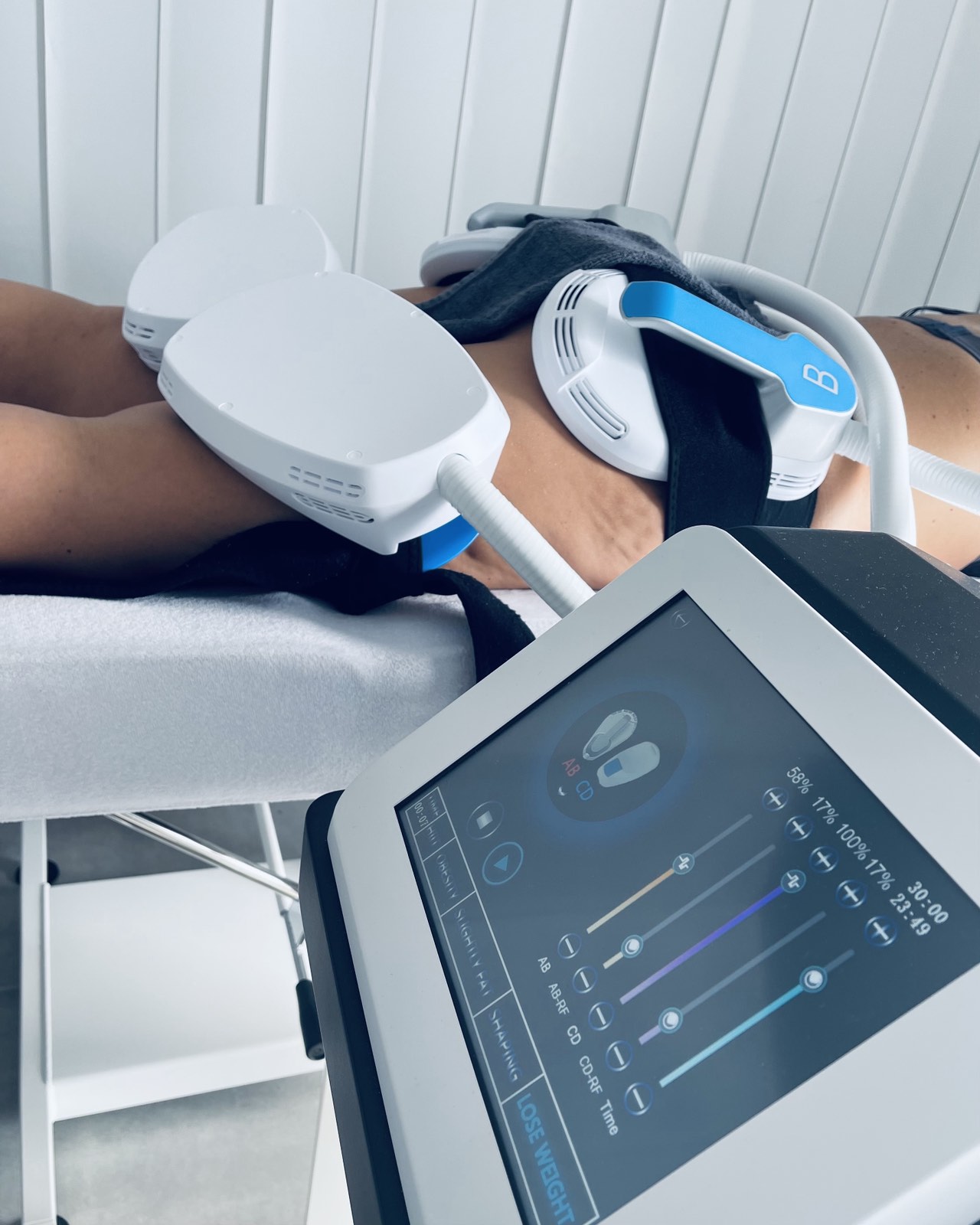 Világújdonság 13 TESLA! Pulzáló elektromágneses mező, egy innovatív, non-invazív alakformáló eljárás, amely magas frekvenciájú elektromágneses mezővel egyszerre építi az izmokat és csökkenti a zsírszövetet. 30 perc alatt kb. 20 000 izomösszehúzódást idéz elő, ami kimerítő edzés nélkül feszesebb hasat, popsit vagy karokat eredményez.
